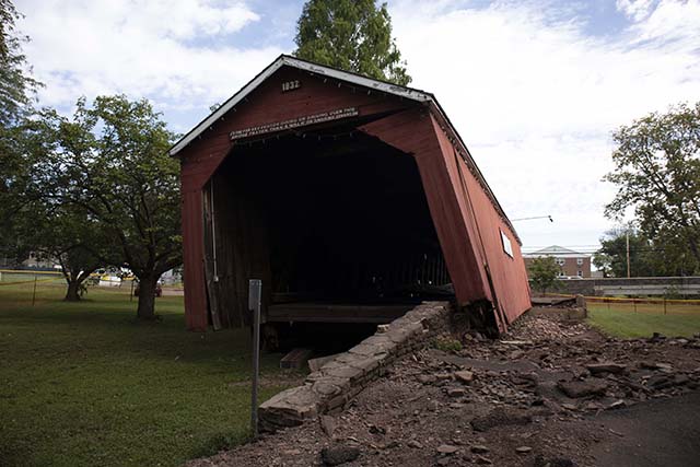 The repairs to Perkasie’s historical 1832 covered bridge have passed an important milestone as the Borough has selected the firms that will rehabilitate the bridge’s timber structure and abutments that were damaged by Hurricane Ida.